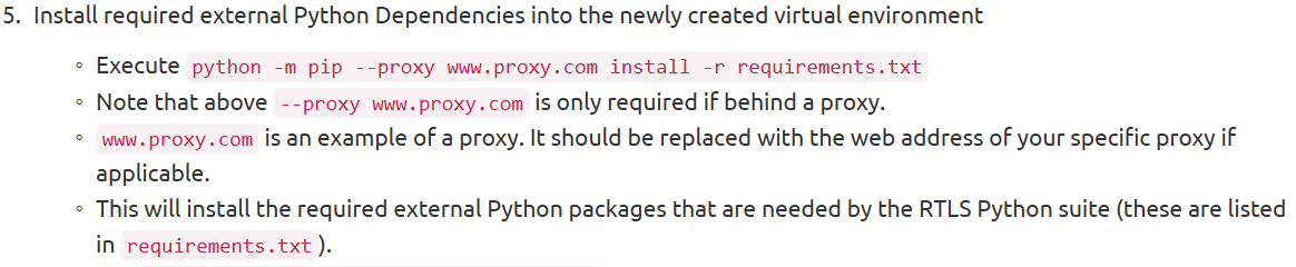 I'd like to know where to install the required external Python packages that are needed by the RTLS Python suite (these are listed in requirements.txt as follows