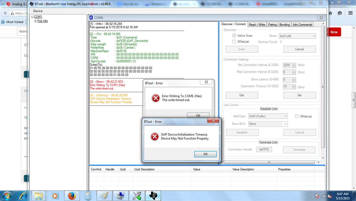I am using BTool software but i have GAP device initialization time out error. how do i rectify this problem .below attached error