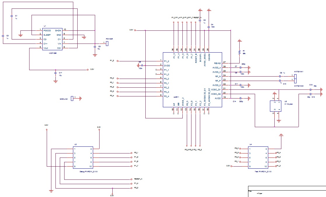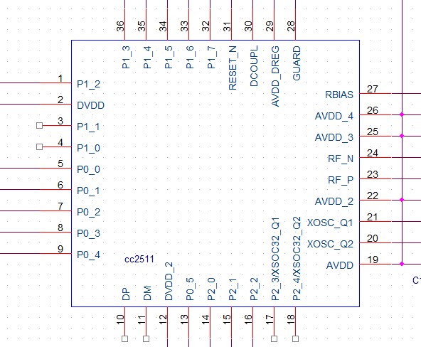 I have encountered a problem when doing my project using the CC2511 transceiver. I bought a CC2511 dongle and did some test on it. Then I designed my own circuit. Actually the schematic is almost the same as the dongle. The difference is that my board does not have a USB interface and I used an external loop antenna instead of the microstrip antenna. I powered my board up and tested every pin on the oscilloscope. The results (voltage, waveform...) are all the same as I tested the dongle. Which I think I designed my board correctly and I soldered every components well. But then comes the problem, my computer can not find the device. I connected the board through a CC Debugger to my computer. My computer recognized the CC Debugger but it can not find a RF device. What could possibly be the reason of this problem?