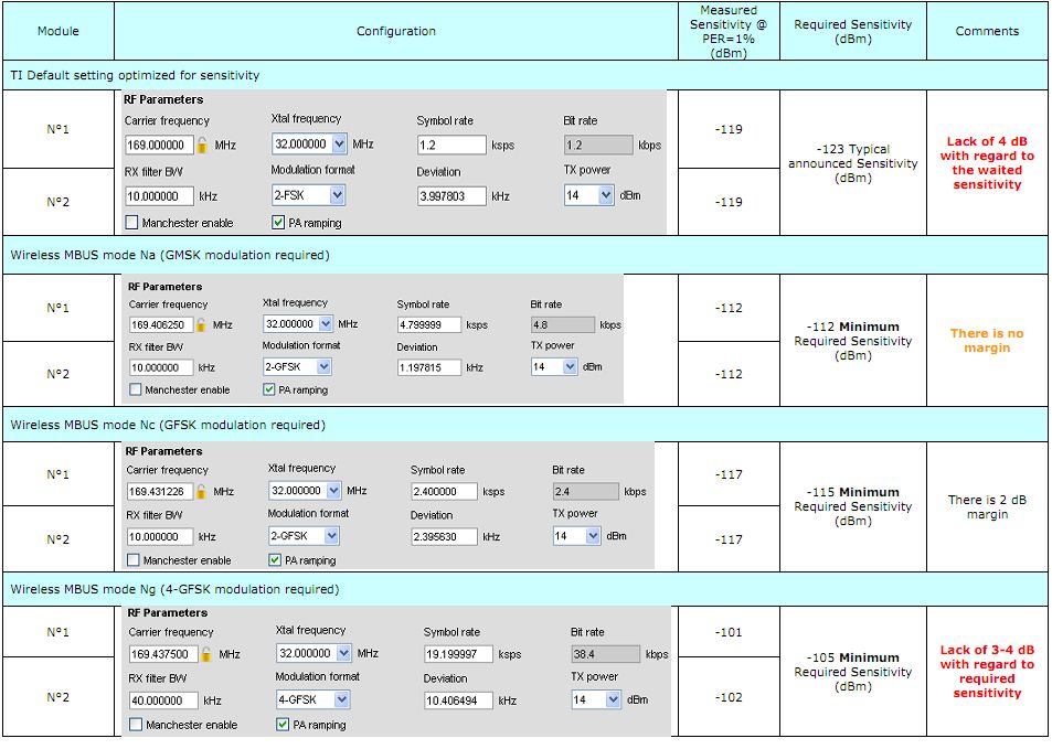 We are testing CC1120 EVK at 169MHz. We currently have the following performances in sensitivity :