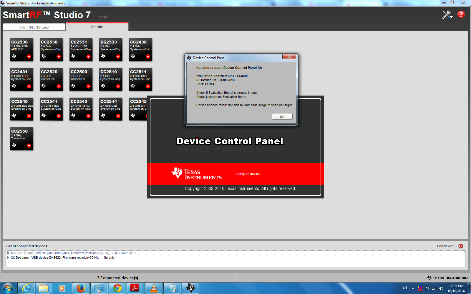 i am using smartRF05EB+msp4302618+cc2520 in smartRf studion version 7......i had done PER test using CCS successfully, do same thing in smartRF studio but it has some problem that is