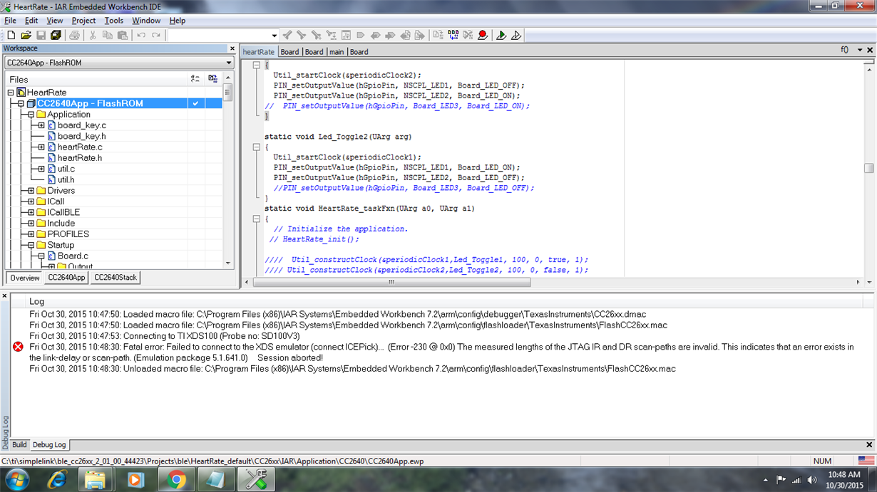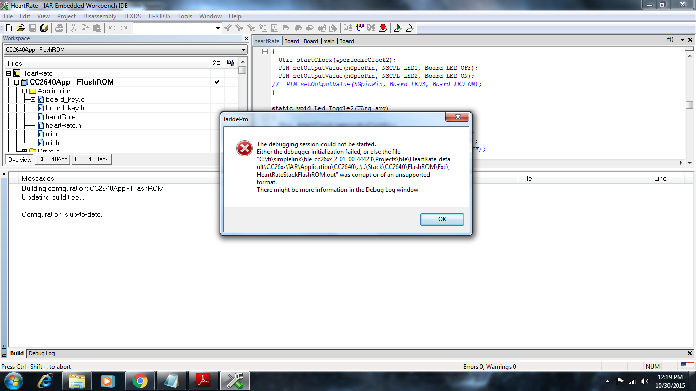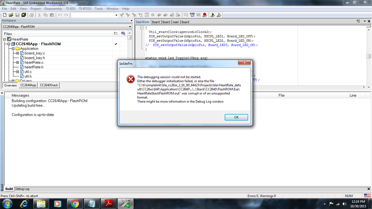 2. During debugging through IAR embedded workbench , bootloader error was observed. (Pl refer 'error_onIAR_erased_code_withSRF' for error message)