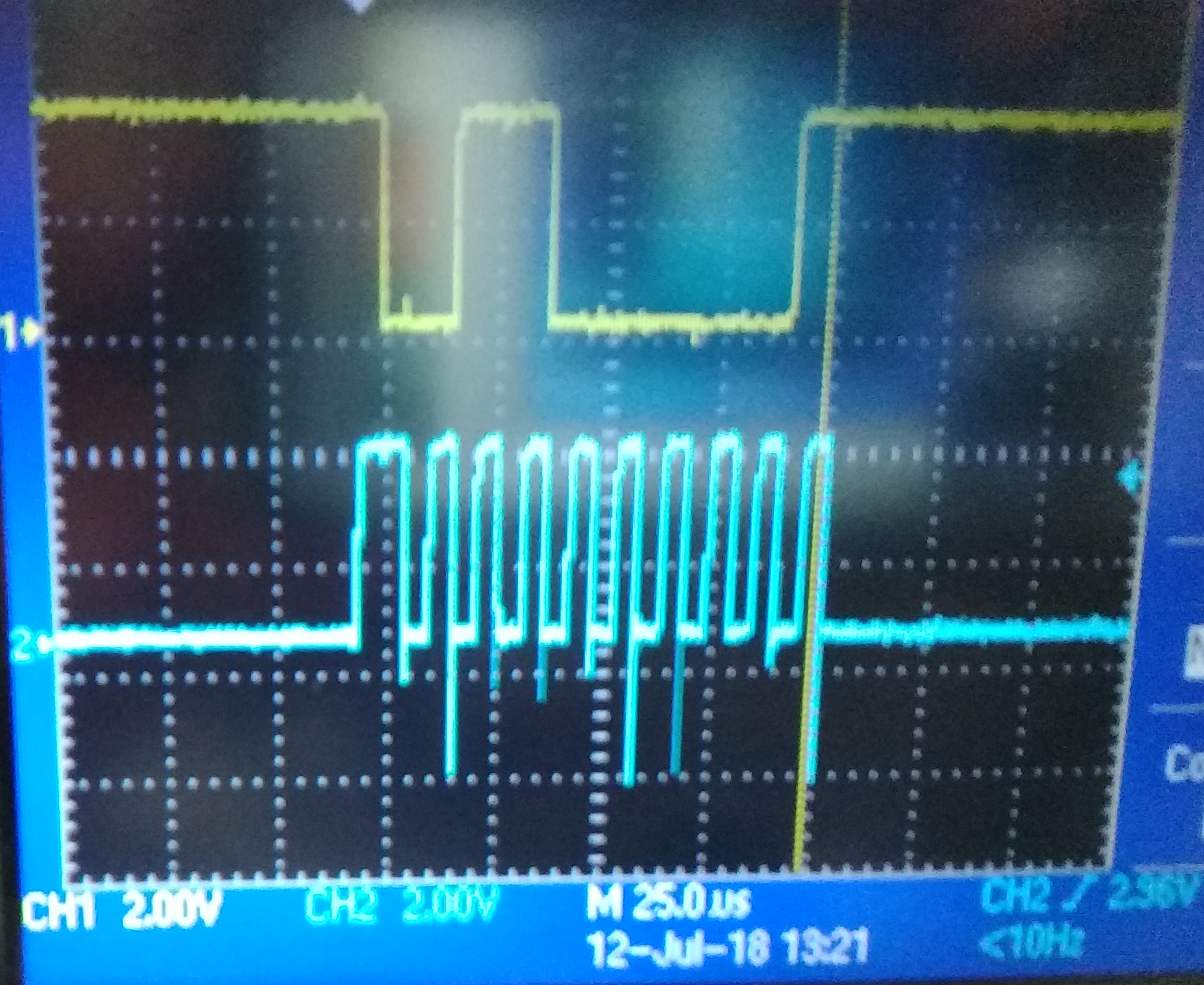 /* --COPYRIGHT--,BSD_EX * Copyright (c) 2012, Texas Instruments Incorporated * All rights reserved. * * Redistribution and use in source and binary forms, with or without * modification, are permitted provided that the following conditions * are met: * * * Redistributions of source code must retain the above copyright * notice, this list of conditions and the following disclaimer. * * * Redistributions in binary form must reproduce the above copyright * notice, this list of conditions and the following disclaimer in the * documentation and/or other materials provided with the distribution. * * * Neither the name of Texas Instruments Incorporated nor the names of * its contributors may be used to endorse or promote products derived * from this software without specific prior written permission. * * THIS SOFTWARE IS PROVIDED BY THE COPYRIGHT HOLDERS AND CONTRIBUTORS "AS IS" * AND ANY EXPRESS OR IMPLIED WARRANTIES, INCLUDING, BUT NOT LIMITED TO, * THE IMPLIED WARRANTIES OF MERCHANTABILITY AND FITNESS FOR A PARTICULAR * PURPOSE ARE DISCLAIMED. IN NO EVENT SHALL THE COPYRIGHT OWNER OR * CONTRIBUTORS BE LIABLE FOR ANY DIRECT, INDIRECT, INCIDENTAL, SPECIAL, * EXEMPLARY, OR CONSEQUENTIAL DAMAGES (INCLUDING, BUT NOT LIMITED TO, * PROCUREMENT OF SUBSTITUTE GOODS OR SERVICES; LOSS OF USE, DATA, OR PROFITS; * OR BUSINESS INTERRUPTION) HOWEVER CAUSED AND ON ANY THEORY OF LIABILITY, * WHETHER IN CONTRACT, STRICT LIABILITY, OR TORT (INCLUDING NEGLIGENCE OR * OTHERWISE) ARISING IN ANY WAY OUT OF THE USE OF THIS SOFTWARE, * EVEN IF ADVISED OF THE POSSIBILITY OF SUCH DAMAGE. * ******************************************************************************* * * MSP430 CODE EXAMPLE DISCLAIMER * * MSP430 code examples are self-contained low-level programs that typically * demonstrate a single peripheral function or device feature in a highly * concise manner. For this the code may rely on the device's power-on default * register values and settings such as the clock configuration and care must * be taken when combining code from several examples to avoid potential side * effects. Also see www.ti.com/grace for a GUI- and www.ti.com/msp430ware * for an API functional library-approach to peripheral configuration. * * --/COPYRIGHT--*/ //****************************************************************************** // MSP430G2xx3 Demo - USCI_B0 I2C Master TX multiple bytes to MSP430 Slave // // Description: This demo connects two MSP430's via the I2C bus. The master // transmits to the slave. This is the master code. It continuously // transmits an array of data and demonstrates how to implement an I2C // master transmitter sending multiple bytes using the USCI_B0 TX interrupt. // ACLK = n/a, MCLK = SMCLK = BRCLK = default DCO = ~1.2MHz // // *** to be used with "msp430g2xx3_uscib0_i2c_09.c" *** // // /|\ /|\ // MSP430G2xx3 10k 10k MSP430G2xx3 // slave | | master // ----------------- | | ----------------- // -|XIN P3.1/UCB0SDA|<-|---+->|P3.1/UCB0SDA XIN|- // | | | | | // -|XOUT | | | XOUT|- // | P3.2/UCB0SCL|<-+----->|P3.2/UCB0SCL | // | | | | // // D. Dang // Texas Instruments Inc. // February 2011 // Built with CCS Version 4.2.0 and IAR Embedded Workbench Version: 5.10 //****************************************************************************** #include <msp430.h> unsigned char *PTxData; // Pointer to TX data unsigned char TXByteCtr; const unsigned char TxData[] = // Table of data to transmit { 0x11, 0x22, 0x33, 0x44, 0x55 }; int main(void) { WDTCTL = WDTPW + WDTHOLD; // Stop WDT P1SEL |= BIT6 + BIT7; // Assign I2C pins to USCI_B0 P1SEL2|= BIT6 + BIT7; // Assign I2C pins to USCI_B0 UCB0CTL1 |= UCSWRST; // Enable SW reset UCB0CTL0 = UCMST + UCMODE_3 + UCSYNC; // I2C Master, synchronous mode UCB0CTL1 = UCSSEL_2 + UCSWRST; // Use SMCLK, keep SW reset UCB0BR0 = 12; // fSCL = SMCLK/12 = ~100kHz UCB0BR1 = 0; UCB0I2CSA = 0x48; // Slave Address is 048h UCB0CTL1 &= ~UCSWRST; // Clear SW reset, resume operation IE2 |= UCB0TXIE; // Enable TX interrupt while (1) { PTxData = (unsigned char *)TxData; // TX array start address TXByteCtr = sizeof TxData; // Load TX byte counter while (UCB0CTL1 & UCTXSTP); // Ensure stop condition got sent UCB0CTL1 |= UCTR + UCTXSTT; // I2C TX, start condition __bis_SR_register(CPUOFF + GIE); // Enter LPM0 w/ interrupts // Remain in LPM0 until all data // is TX'd } } //------------------------------------------------------------------------------ // The USCIAB0TX_ISR is structured such that it can be used to transmit any // number of bytes by pre-loading TXByteCtr with the byte count. Also, TXData // points to the next byte to transmit. //------------------------------------------------------------------------------ #if defined(__TI_COMPILER_VERSION__) || defined(__IAR_SYSTEMS_ICC__) #pragma vector = USCIAB0TX_VECTOR __interrupt void USCIAB0TX_ISR(void) #elif defined(__GNUC__) void __attribute__ ((interrupt(USCIAB0TX_VECTOR))) USCIAB0TX_ISR (void) #else #error Compiler not supported! #endif { if (TXByteCtr) // Check TX byte counter { UCB0TXBUF = *PTxData++; // Load TX buffer TXByteCtr--; // Decrement TX byte counter } else { UCB0CTL1 |= UCTXSTP; // I2C stop condition IFG2 &= ~UCB0TXIFG; // Clear USCI_B0 TX int flag __bic_SR_register_on_exit(CPUOFF); // Exit LPM0 } }