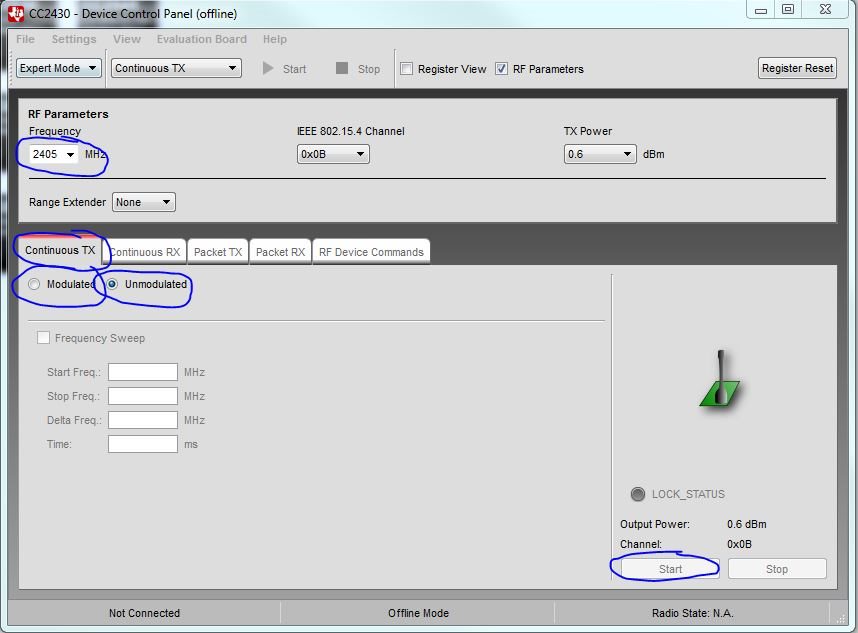 Now I need to do the frequency deviation and power test of the wireless module (CC2430F128) by software(SmartRF_Studio_7-1.3.2 ) .