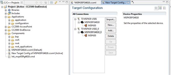 I am working on a sensors network where I use the on the MSP430FG4618 (I have the F4618 EVM) to store data in the End Device and send it to the Access Point. For the RF part I am using the CC2500 EVM.