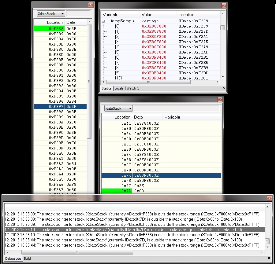The program runs between 3-4 hours without any problems but then an idata stack overflow occurs and the program stops. If I run the device like I want out of debug mode, it also stops after 3-4 hours probably because of the idata overflow issue (although I don’t know for sure because of not being in debug mode). I have read in a different forum that it is not a good idea to define a large array in a function. From debug mode, I know for certain that the stack clears after the ADC function for a couple of hours.