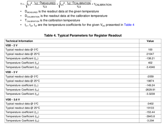 5- If you try to solve the second order equation (7) in page 6 with the coefficients in table 4 on the same page there are no real solutions for digital readings above 17800 (the decriment delta is negative)... wich is below 25oC...