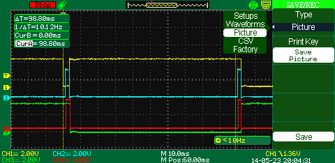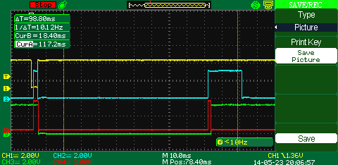 Blue trace is GPIO2 (0x06) on first board