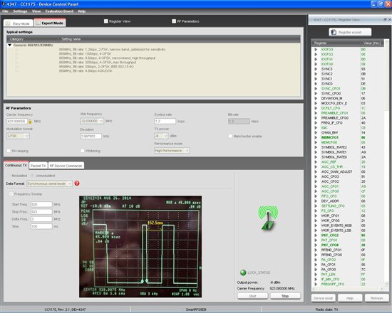 I used the Frequency Sweep function in SmartRF to check the FHSS speed of the CC1175.
