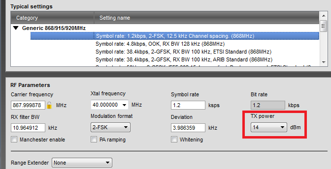 If you enter "Regster View" = 0x2F Become "TX Power" = 6dBm.