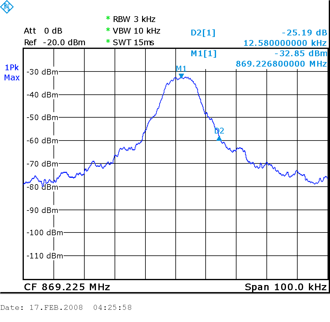 We have an idea to use CC430F5137 SoC with CC1101 radio chip in social alarm frequency band 869.20-869.25 MHz. Channel spacing according to EN300-220-1 is 25kHz.