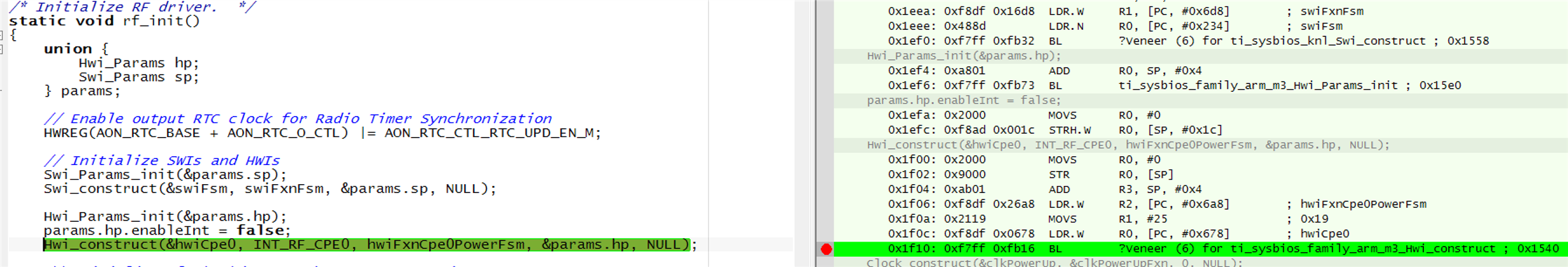 I am trying to add EasyLink to a CC1350 BLE Stack project. The BLE part of my app works fine. However, i am running into an issue where Hwi_construct just hangs forever inside the rf_init function of RF.c driver file.