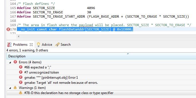 But I am getting erros in the line: __no_init const char flashDataAddr[SECTOR_SIZE] @ 0x1E000;