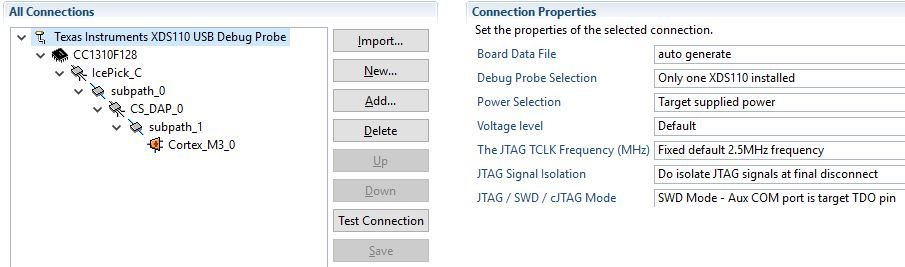 We are connecting the pins (GND, 3v3, TMS and TCK) from the XDS110 presented in the Launchpad to our board.