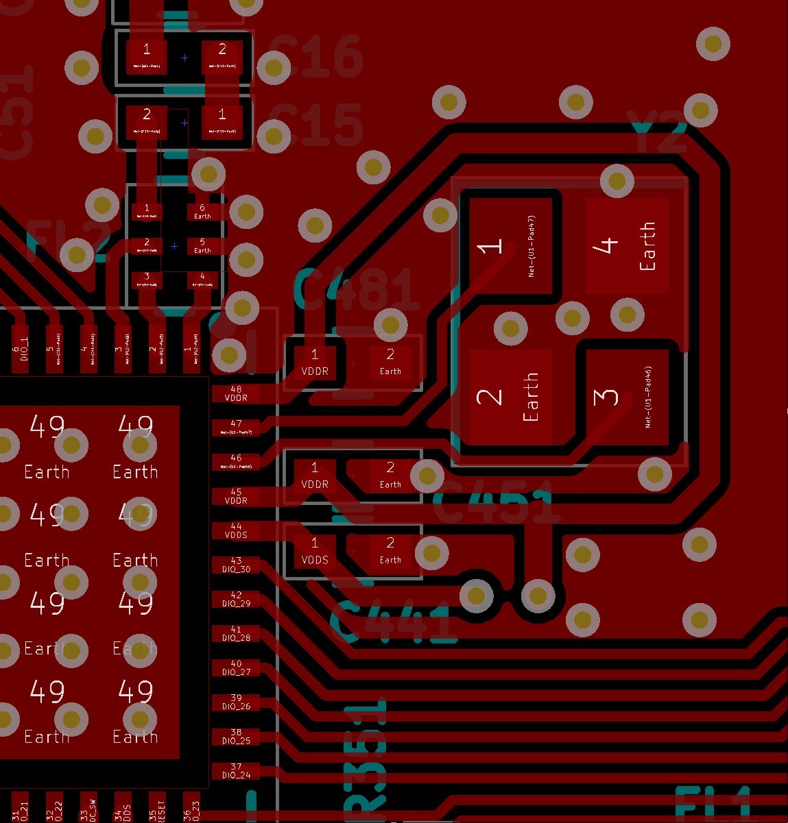 After developing a SW for my project with CCS to test in my CC1310 EVM's on SmartRF06 boards and verifying all worked as intended, I have designed and manufactured a custom board based on the CC1310 2-Layer 7x7 v1.3.3 reference design (CC13xxEM-7XD-7793), but adding the IPC 0850BM14E0016T from Johanson Technology to eliminate passive components and using the PCB antenna. All intended to work in 868MHz.