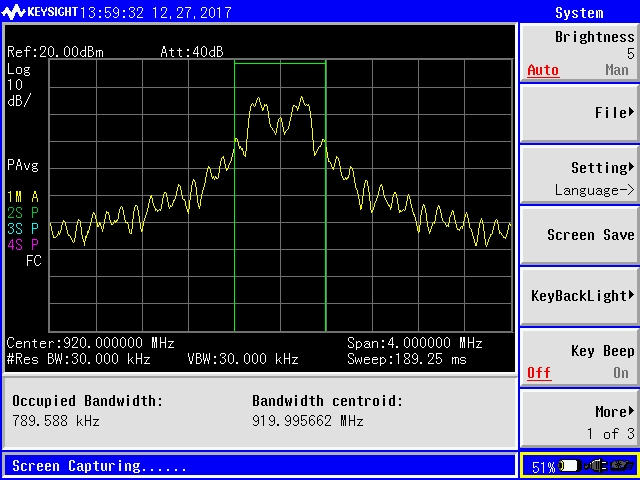 I am experimenting 500kbps 2FSK modulation using 250kHz deviation on 920.0MHz, (from SmartRF)