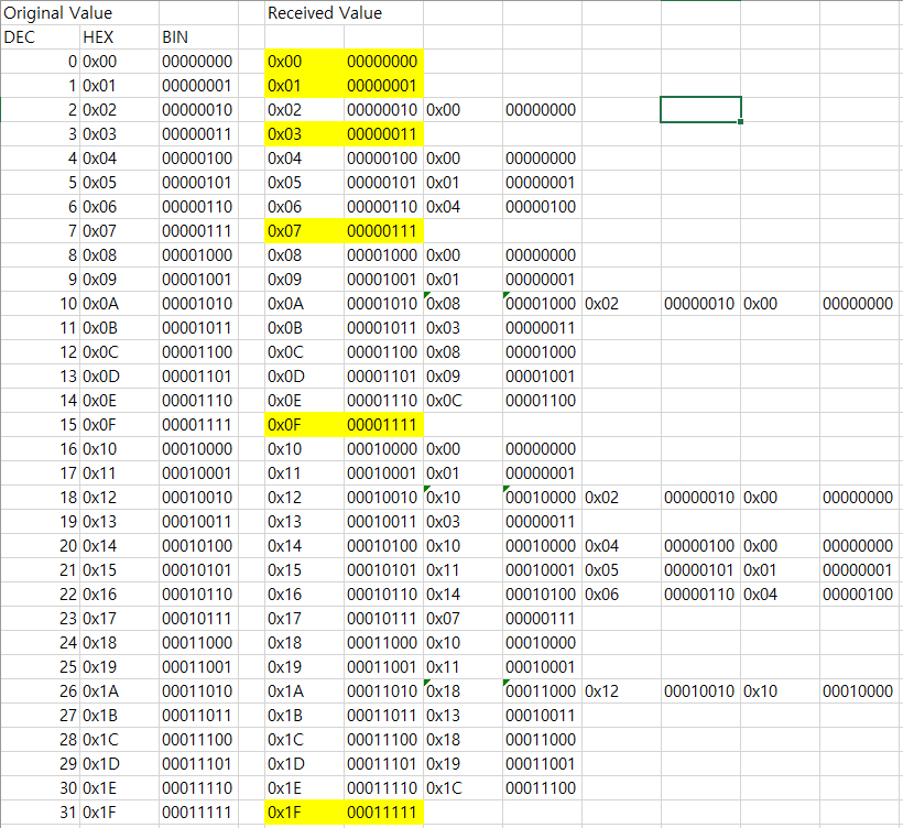 For example, when sending 0xC8, it receives 0x88, 0x80, etc. (confirmed by Slave).