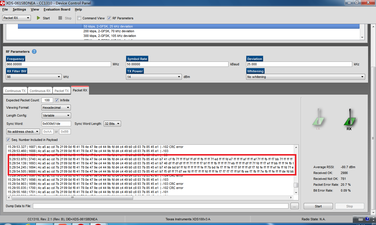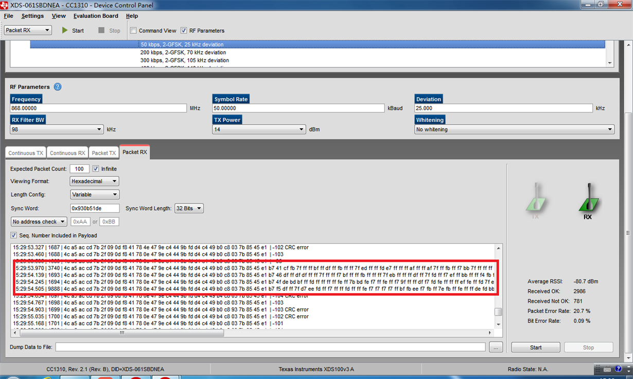 We test CC1310's RF performance test on our ctm board,meeting some error hints, Could you tell me what the information mean?
