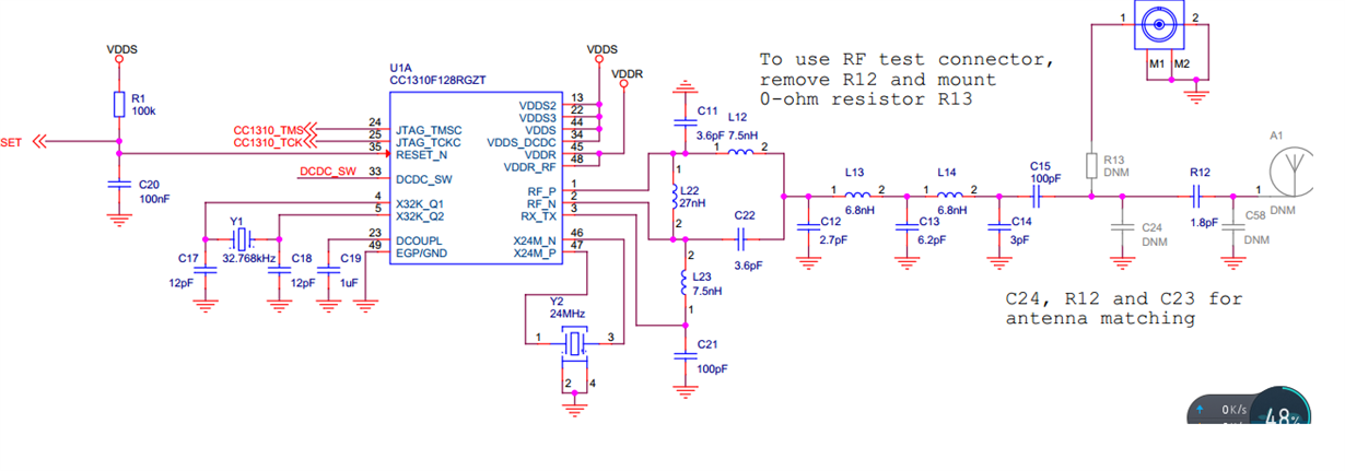 This is for almost all input level,and CTM said this issue didn't meet with launchpad. They also test their CC1310(5*5)'s RF output connecting to Launchpad's RF circuit with the same error.But CC1310(7*7) in launchpad's RF output conneting to Ctm's board RF circuit is OK. The follow is Ctm sch and PCB layout.