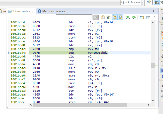 After 110 seconds, the loop is located in the blue arrow position below. It can only be restored by hardware reset, and the watchdog will not work.