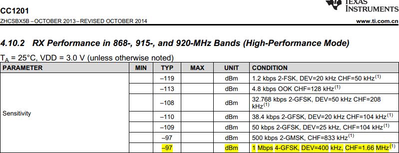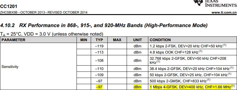 expert mode: Symbol rate:500ksps,4-GFSK,max throughput, ETSI Standard(868MHz)