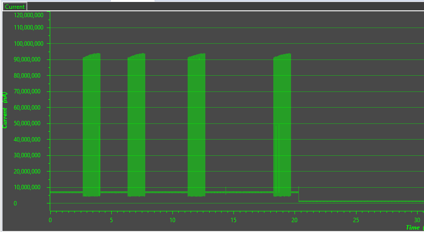 CC1352P with transmit power set at 20DB and frequency hopping mode enabled seems to draw a lot of current when trying to join a network. As in attached current trace, the joining process consists of several ~1.5 second bouts of high current draw, with an interval of 2 ~ 3 seconds.