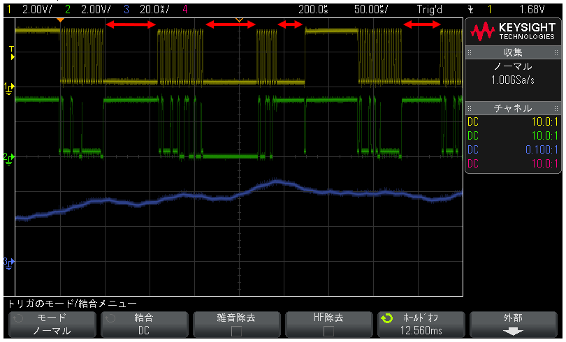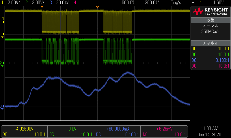 Ch.3 (blue) : Current consumption waveform (2mA/div)