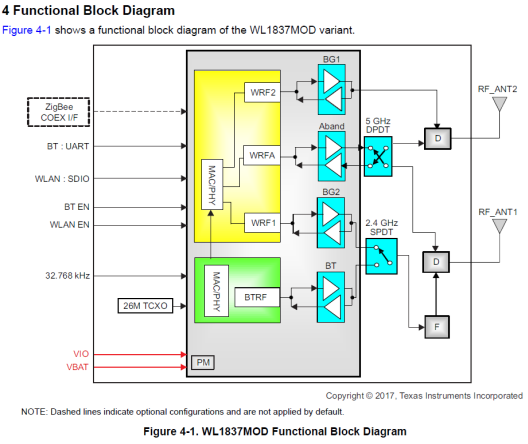 When we use the start_tx command we are observing that the generated test signal is not on both RF_ANT1 and RF_ANT2. It appears the antenna utilized depends on the selected rate. Our observations indicate that rates 0 (1.0 Mbps) through 20 (MCS8) only transmit on RF_ANT1. If we set to rate to 21 (MCS9) and above we will see signal on both RF_ANT1 and RF_ANT2. Can you help us understand this. It appears the WL1837MOD determines SISO or MIMO based on the transmission rate. Is that how it works?