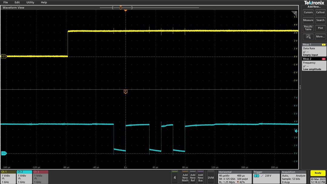 - CC3235 generates a slave ready signal on one of its GPIO. This is visible on oscilloscope.