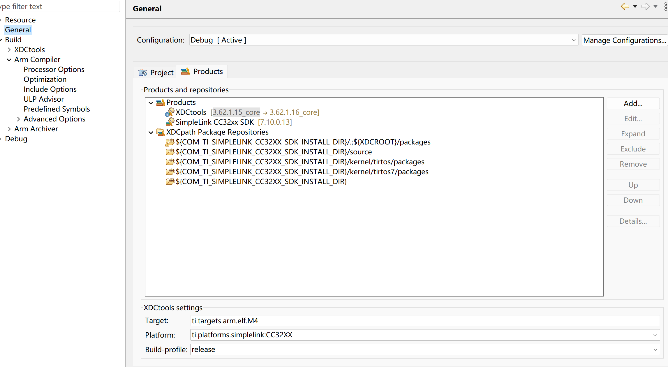 XDCpath repository 'C:/ti/simplelink_cc32xx_sdk_7_10_00_13/.;C:/ti/ccs1220/xdctools_3_62_01_16_core/packages' cannot be found! Visit project's 'Properties > General > Products' tab to adjust the XDCpath.