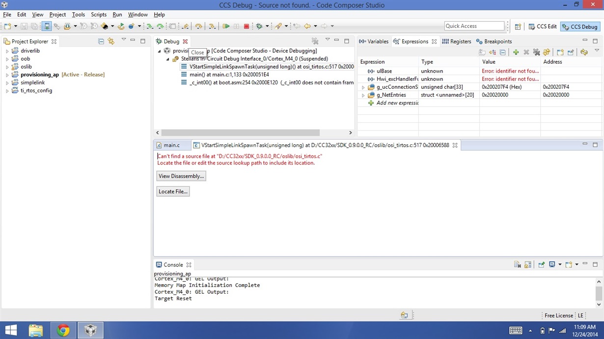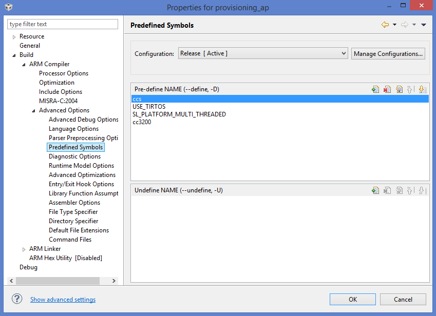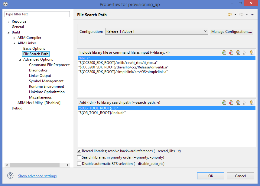 I get taken to osi_freertos.c rather than osi_tirtos.c. What have I missed? Screen shots of my project properties below in case they can help.