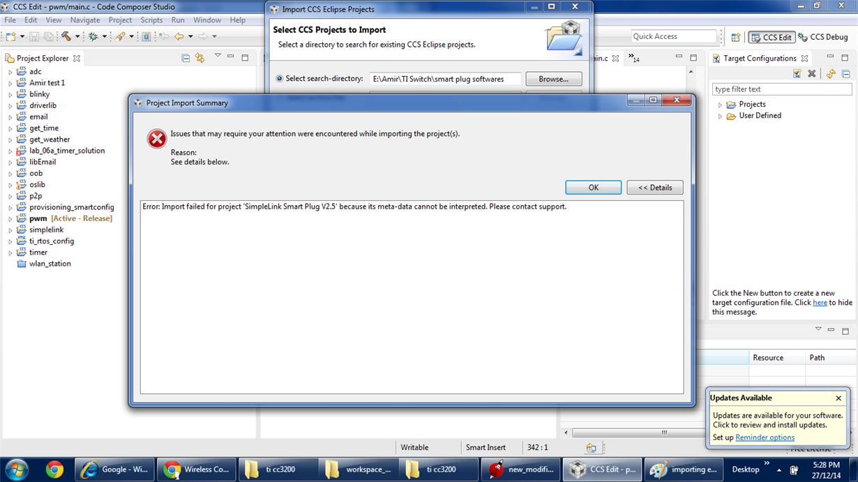 Error: Import failed for project 'SimpleLink Smart Plug V2.5' because its meta-data cannot be interpreted. Please contact support.