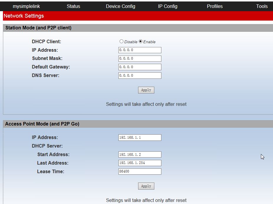 I have used cc3200 .Now i want to set DHCP server address.The follow is my test in AP mode with HTTPSERVER project.