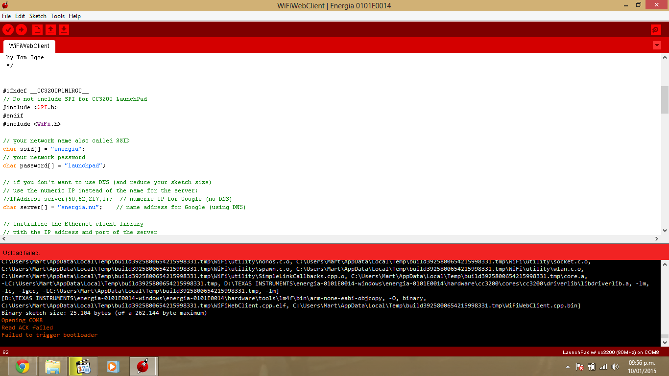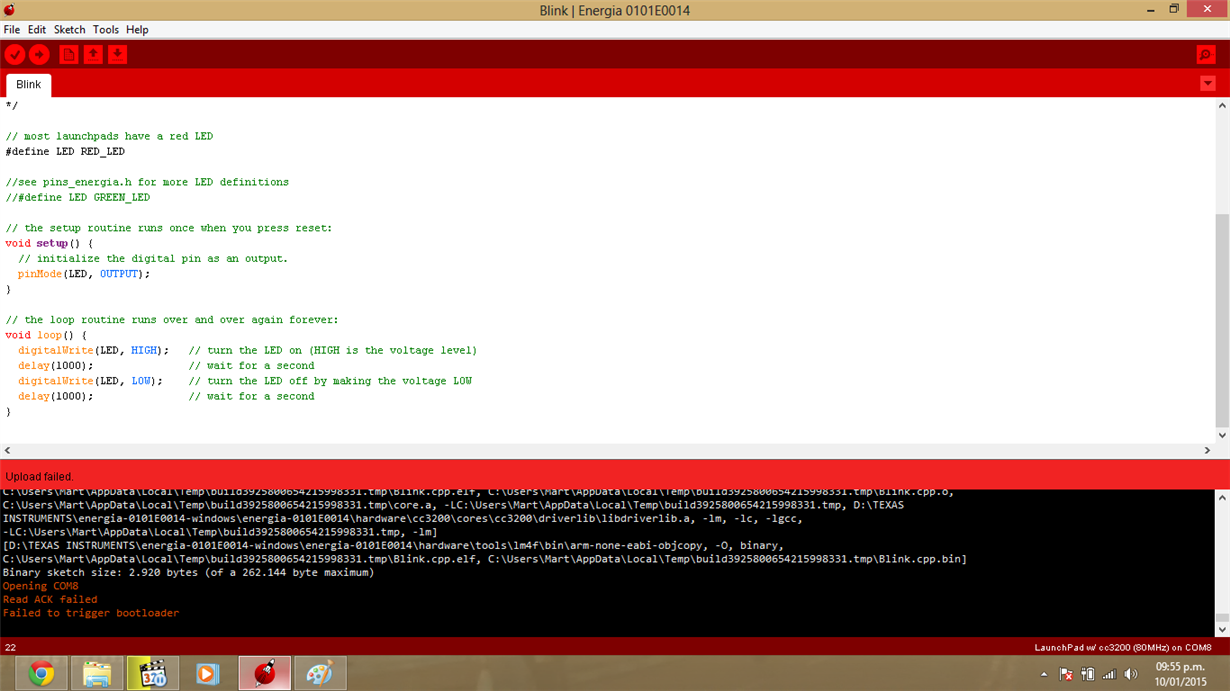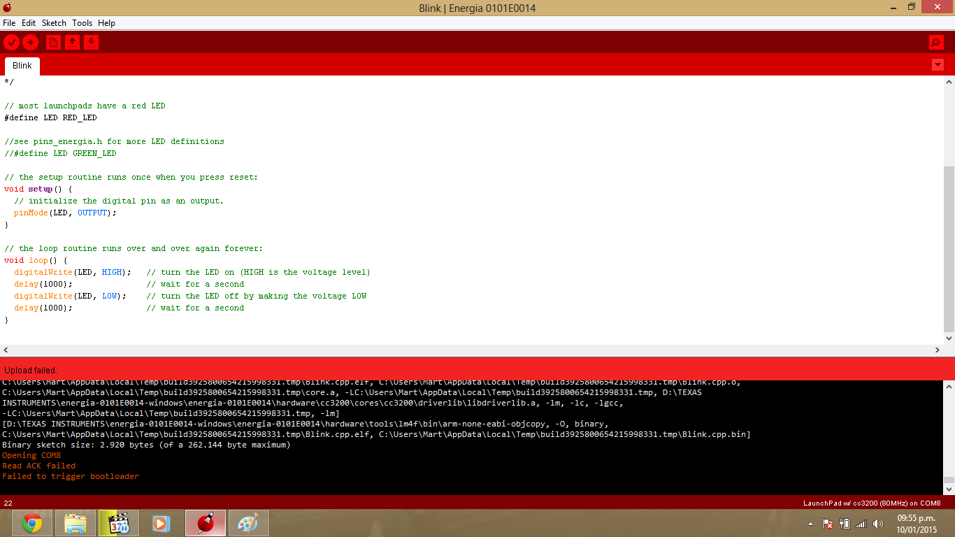 when I try to burn with energy, gives me this problem even with the simplest of all programs is to light LEDs: