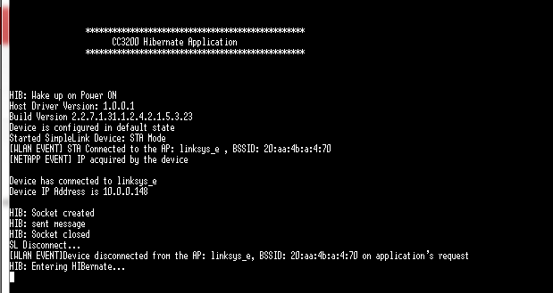 I'm currently working on using the different sleep modes and hibernation mode. The sleep modes work well, but I have some trouble with hibernation. To figure out were the problem might be I started the "hib" sample from the SDK and it seams that it isn't working as expected either.