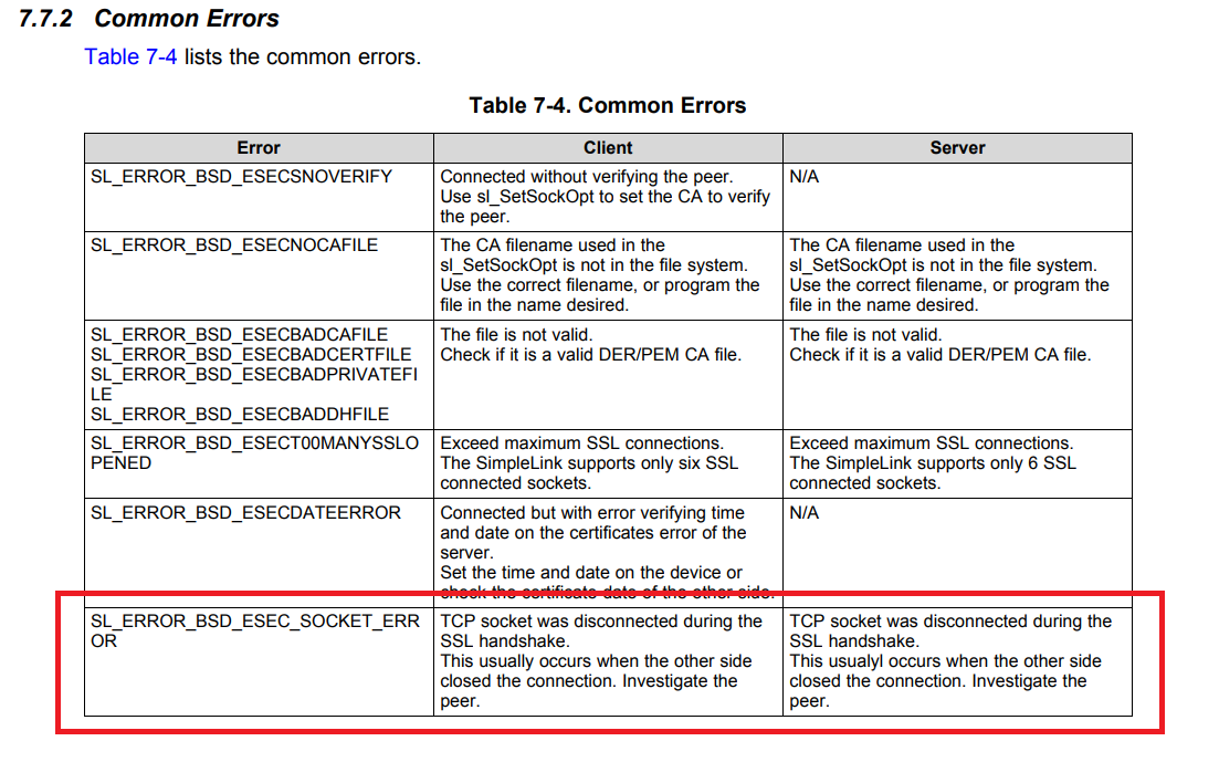 In callback SimpleLinkSockEventHandler(), a SL_SOCKET_ASYNC_EVENT is got with value -708.