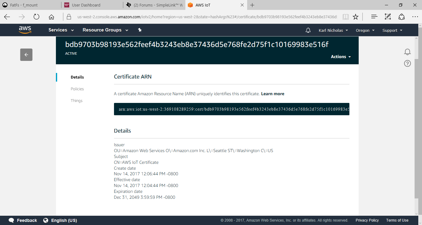 With the AWS IoT Shadow Sample I am having the usual troubles connecting to AWS with a full ROOT-CA Certificate.
