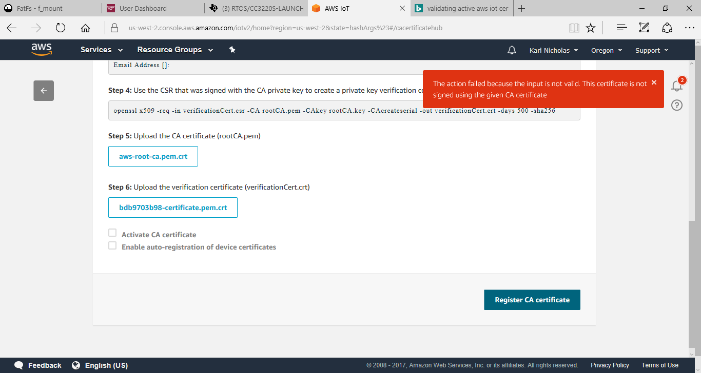However, commenting this out should only be needed when working with an invalid root certificate, but I have a valid root certificate, in fact the same one as in the above post, but I still get the SL_ERROR_BSD_ESECUNKNOWNROOTCA error.