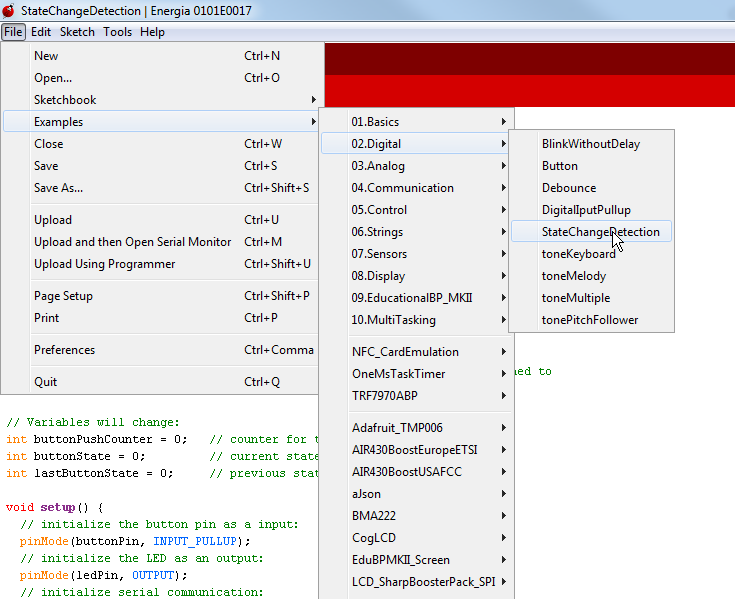 I'm making a project where I need something to count the positive edge trigger of a pin on a CC3200, but I'm having trouble finding any examples that would do it elegantly. I'm using Energia because I'm prototyping at this point.