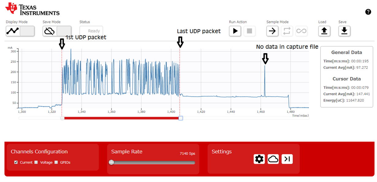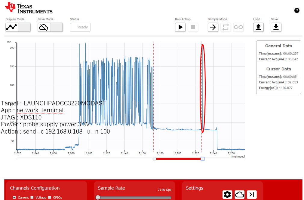 The sample program sends 24KB TCP traffic every 0.16s using sl_Send API.