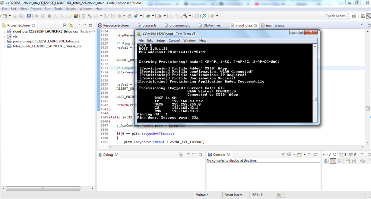 Wifi config using APP, AP connection also fine to connect i will chech to teraterm software