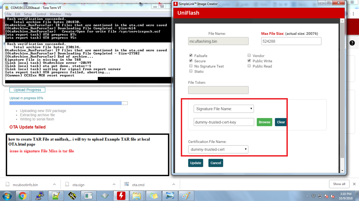 local OTA.HTM Page access is success fully .. but TAR File Signature Missing Error coming .. How to solve this issue