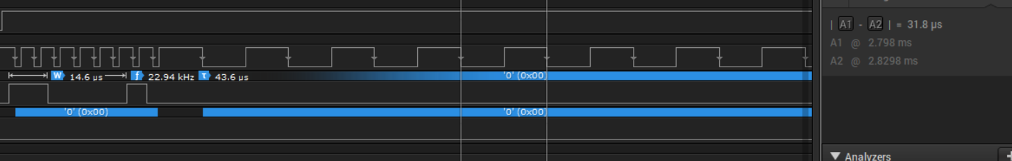 2) Another way is, Instead of using SPI libraries, I am using all 4 pins as GPIOs. I am able to write and read data, mainly I can vary clock just after writing 0xC2 command, the problem with this is the GPIO toggling is it's not consistent, I am not meeting the timing, my requirement is, I need 32us for each cycle. sometimes I am getting 32us and sometimes I am getting 31.8us.