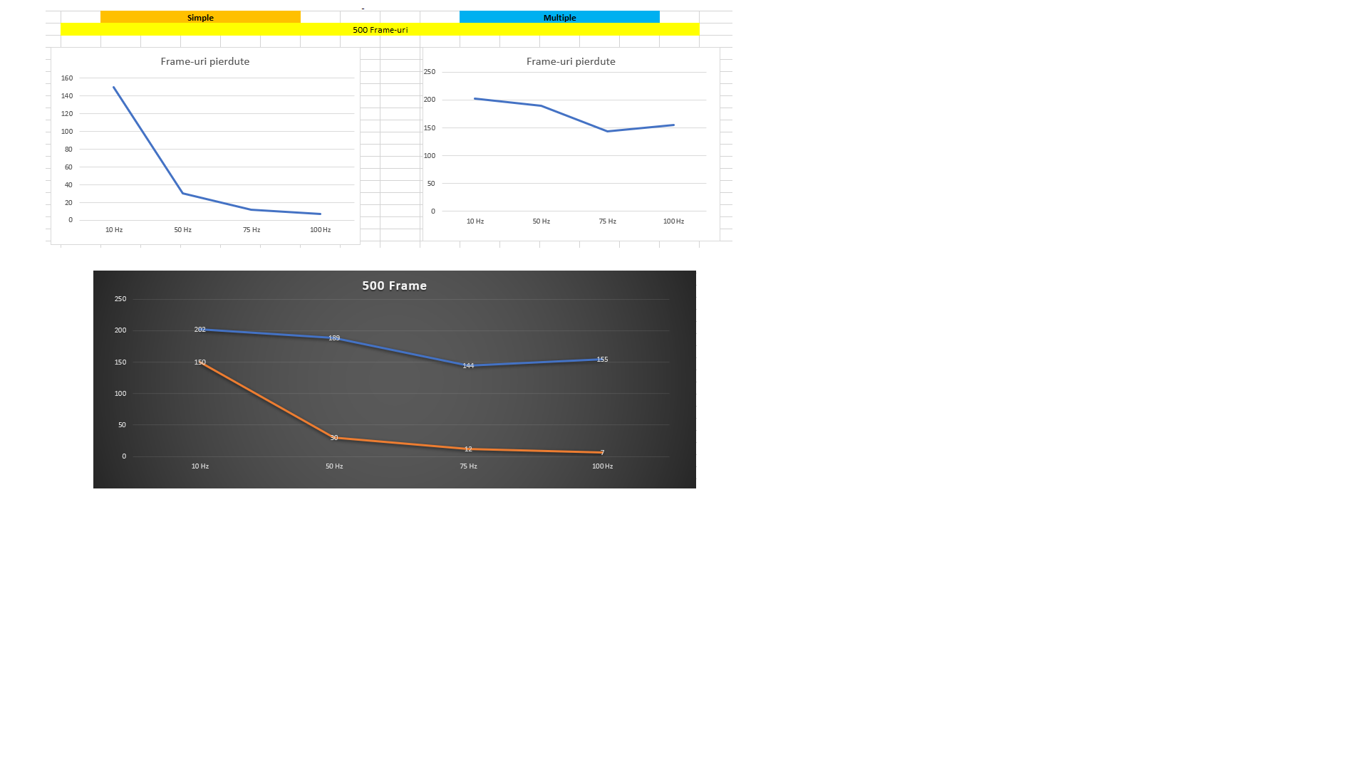 Hi, need some advice from you, I will be short, I did some windows application and embedded application which transmit data from accelerometer through wi-fi connection with a counter value which counts if data was received well between windows application and CC3220SF bord, the format of this data is such: x=value&y=value&z=value&count=value. My problem now is regarding the behaviour because I did the test at 10Hz, 50Hz, 75Hz and 100Hz and the expectation is not achieved by this board and I did not have any explanation for this. My expectation was at the small frequency to obtain more losing of data and at the big frequency to obtain small data losing that at small frequency. In my case, I did obtain more loosing at the small frequency and a little loosing at a big frequency, and for this, I did not any explanation. The chart of behaviour you can see below :