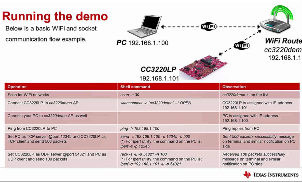 We follow the instructions below, everything is fine till we try to send TCP data from CC3220S to PC on step 5.
