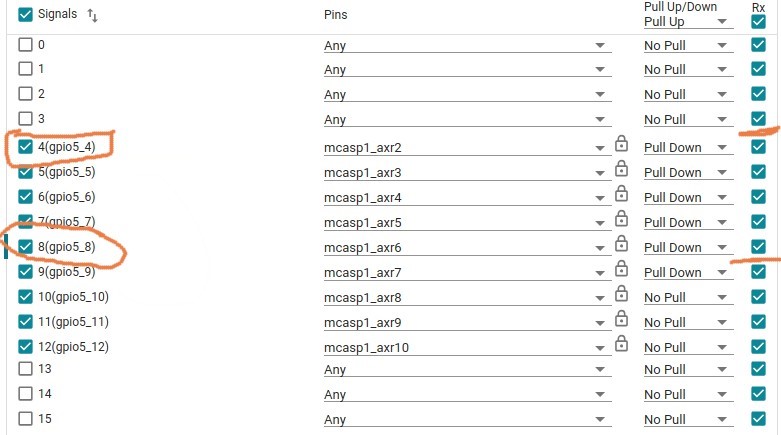 What does the Rx column signify? It is checked in case of both the pins.