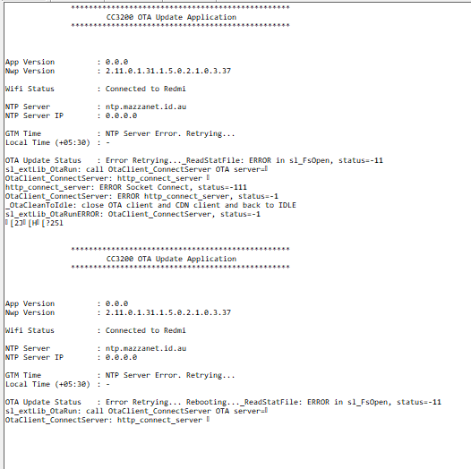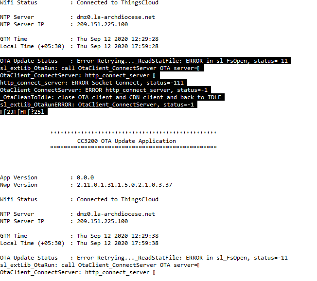 Actually I'm facing some issues with OTA update in my code. It is showing OTA Run = -4. What should I do now?