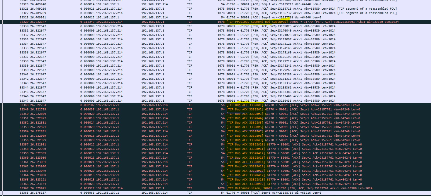 some packets are lost and Windows 10 send Dup ACK (duplcated ACK) to inform SimpleLink about his loss.