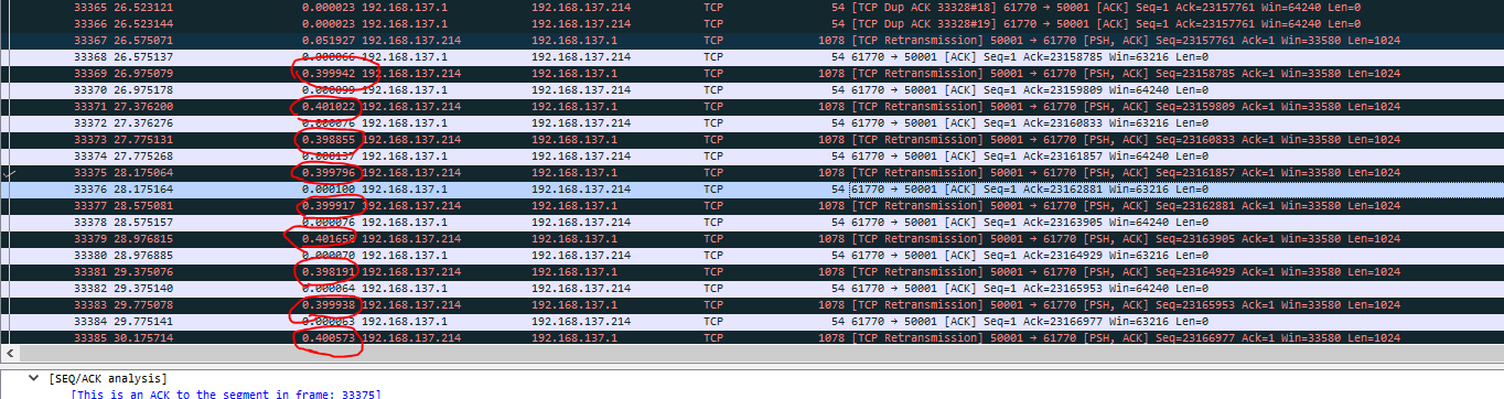 But I observe that SimpleLink retransmits lost packet 400ms after ACK : this is a problem for my aplication !! See image below.