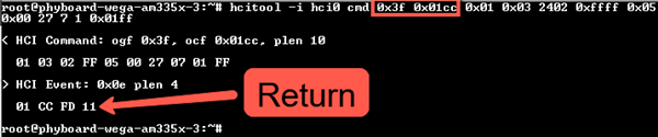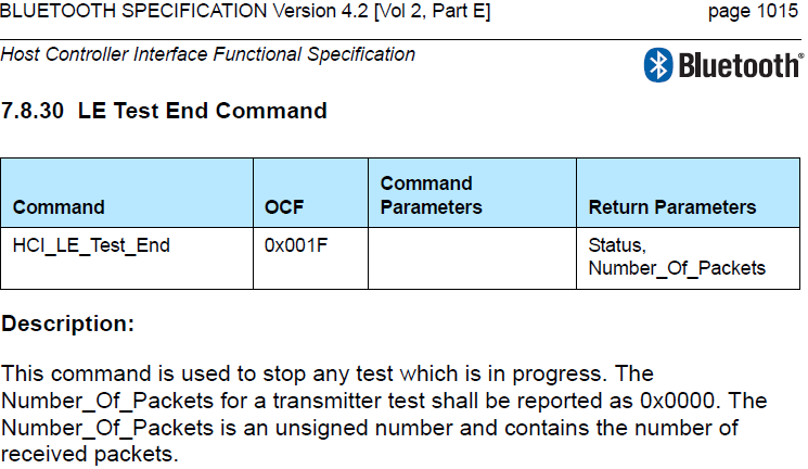 1. For the above, I have tried with HCI commands extracted from Bluetooth Core 4.2 as shown below: